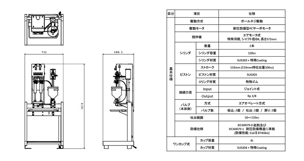 ・専用のスプレーガンの搭載(低圧、微粒化、均一パターン、メンテナンス性)