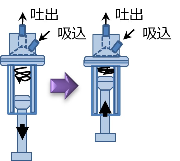 ダイヤフラムポンプは圧力式なので、空気が押された分だけ吐出します。